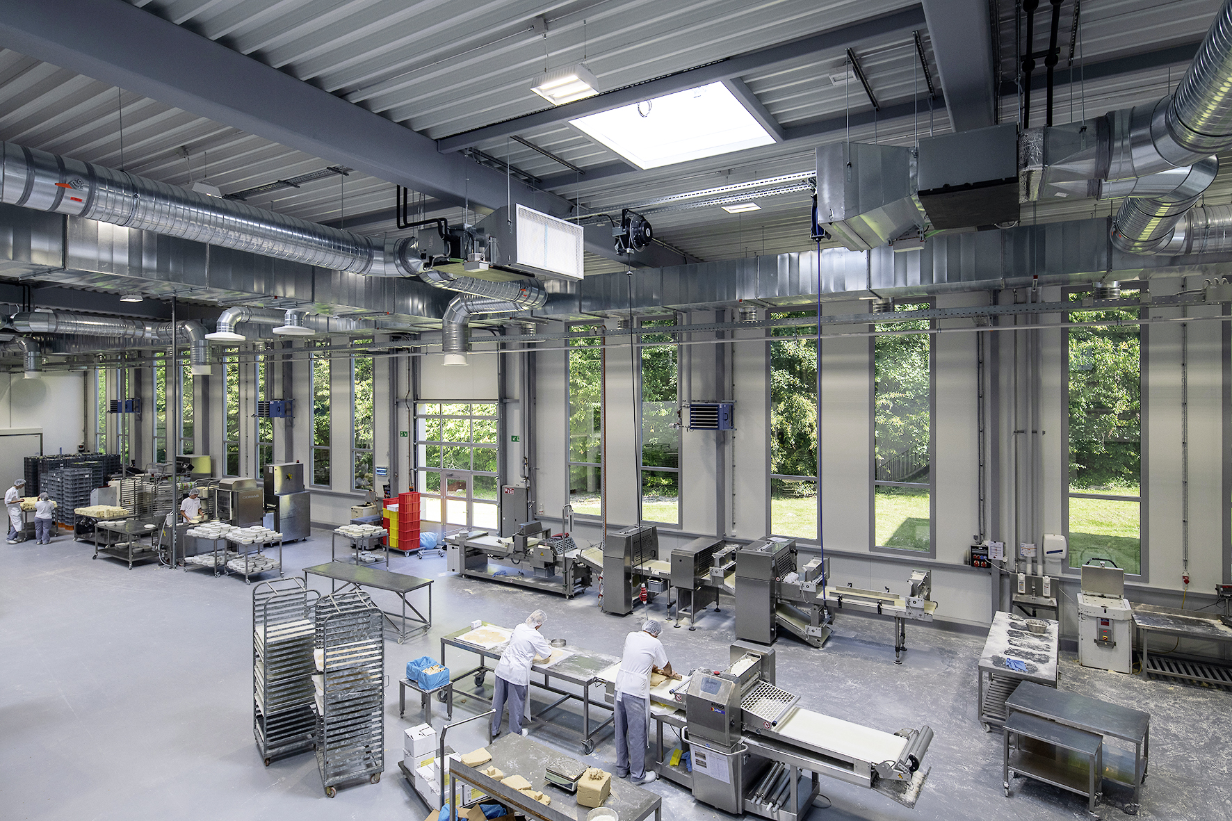 Le complexe bénéfice de trois monoblocs de ventilation, dont l’un de 15’000 m3/h pour la production. La climatisation permet de maintenir une température de 23 à 25 degrés dans toute la zone de production. Un impératif lorsqu’il s’agit de travailler certains produits, comme le beurre.